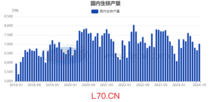 10月份,由于受到宏观政策不断加码和旺季需求释放力度不足以及成本支撑韧性等多重因素的影响,国内钢材市场呈现了高位下滑的行情,钢厂产能释放依然维持一定力度,但同比均呈现“钢、铁、材转升”的特征。据国家统计局数据显示美股股票配资信息网,2024年10月份,我国粗钢产量8188万吨,同比增长2.9%,同比由降转升(详见图1);生铁产量7026万吨,同比增长1.4%,同比由降转升(详见图2);钢材产量11941万吨,同比增长3.5%,同比由降转升(详见图3)。累计来看,2024年1-10月,我国粗钢产量85073万吨,同比下降3.0%;生铁产量71511万吨,同比下降4.0%;钢材产量116484万吨,同比增长0.5%。