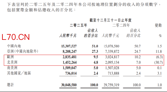 另外,2025年,奥克斯电气在中国内地的收入仅小幅增长1.5%,在欧洲收入则同比下滑6.3%,北美洲收入更是同比暴跌30.7%,南美洲仅同比微增0.1%。