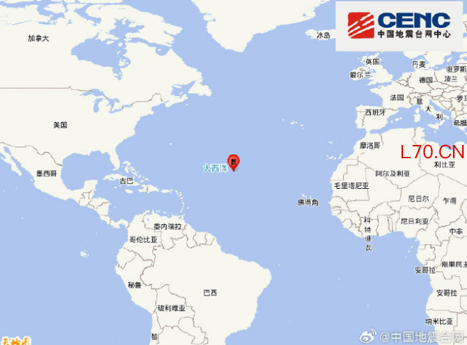 中大西洋海岭北部发生6.7级地震 震源深度10千米