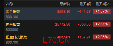 快讯:恒指高开2.61% 科指涨2.95% 科网股、黄金股普涨 AI应用股高开 油气股走弱 山东墨龙跌超14%