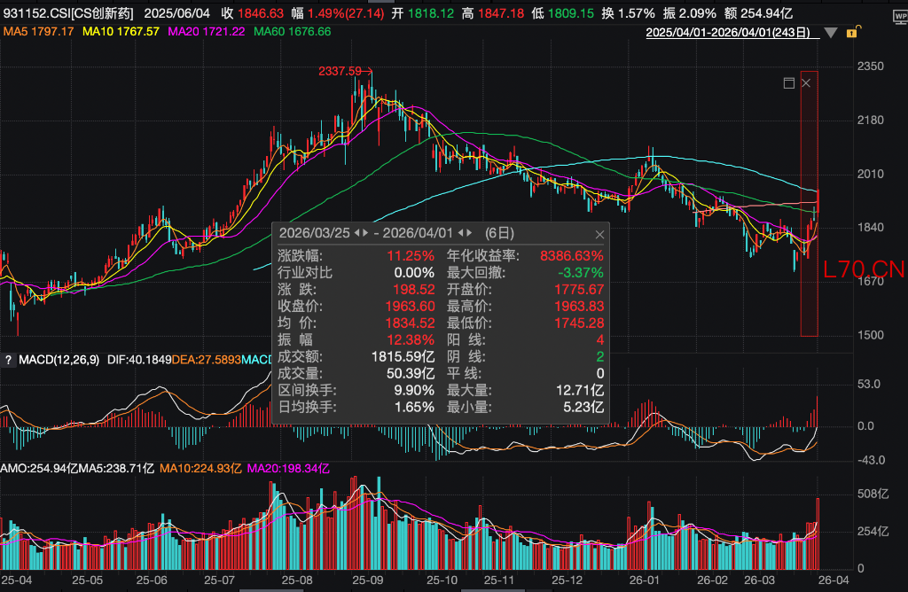 自上周起,创新药板块已显露爆发迹象。中证创新药产业指数过去一周大涨11%,扭转了自2025年9月以来的持续震荡调整态势。
